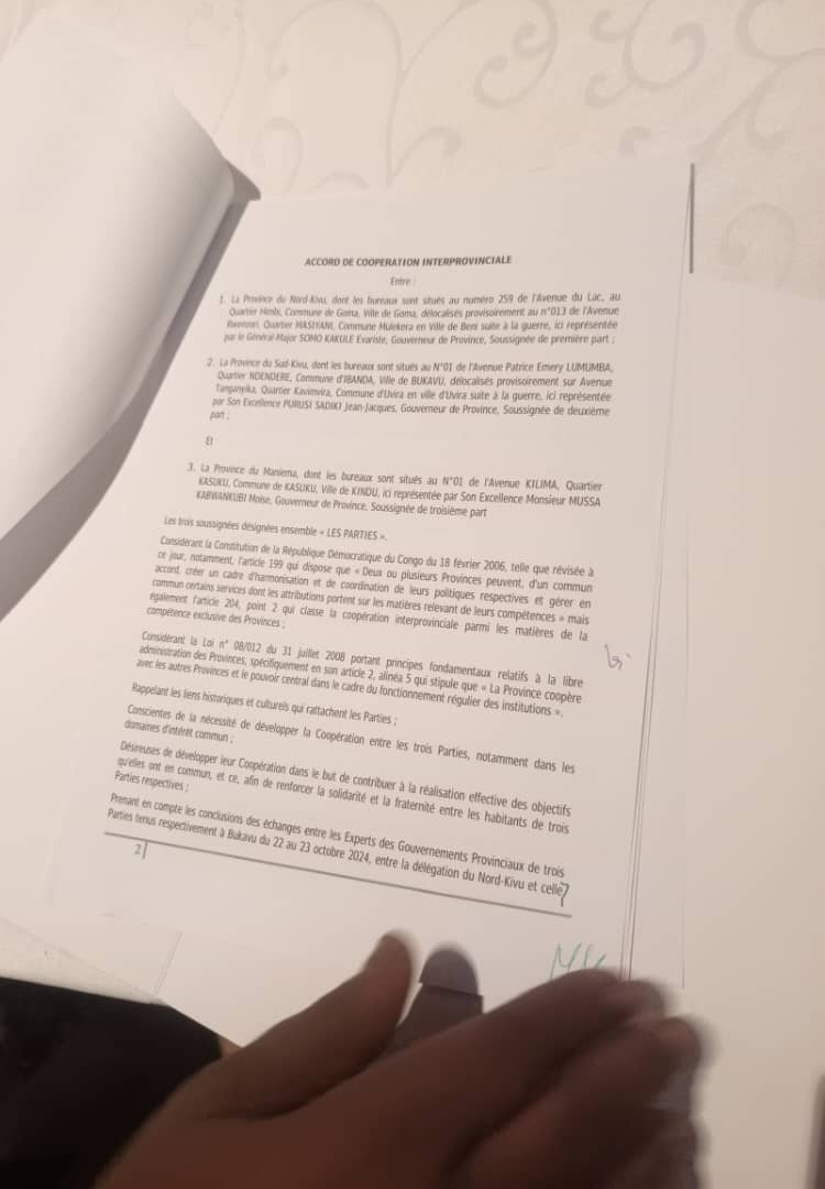 Fondé sur la constitution congolaise et la loi relative à la libre administration des provinces, cet accord parvenu à Election-net.com permet aux trois provinces de mutualiser leurs efforts pour gérer des services communs et coordonner leurs politiques. Les domaines prioritaires incluent les infrastructures (transport, énergie) ; la sécurité (lutte contre l’insécurité transfrontalière) ; la santé et l’éducation (optimisation des ressources).